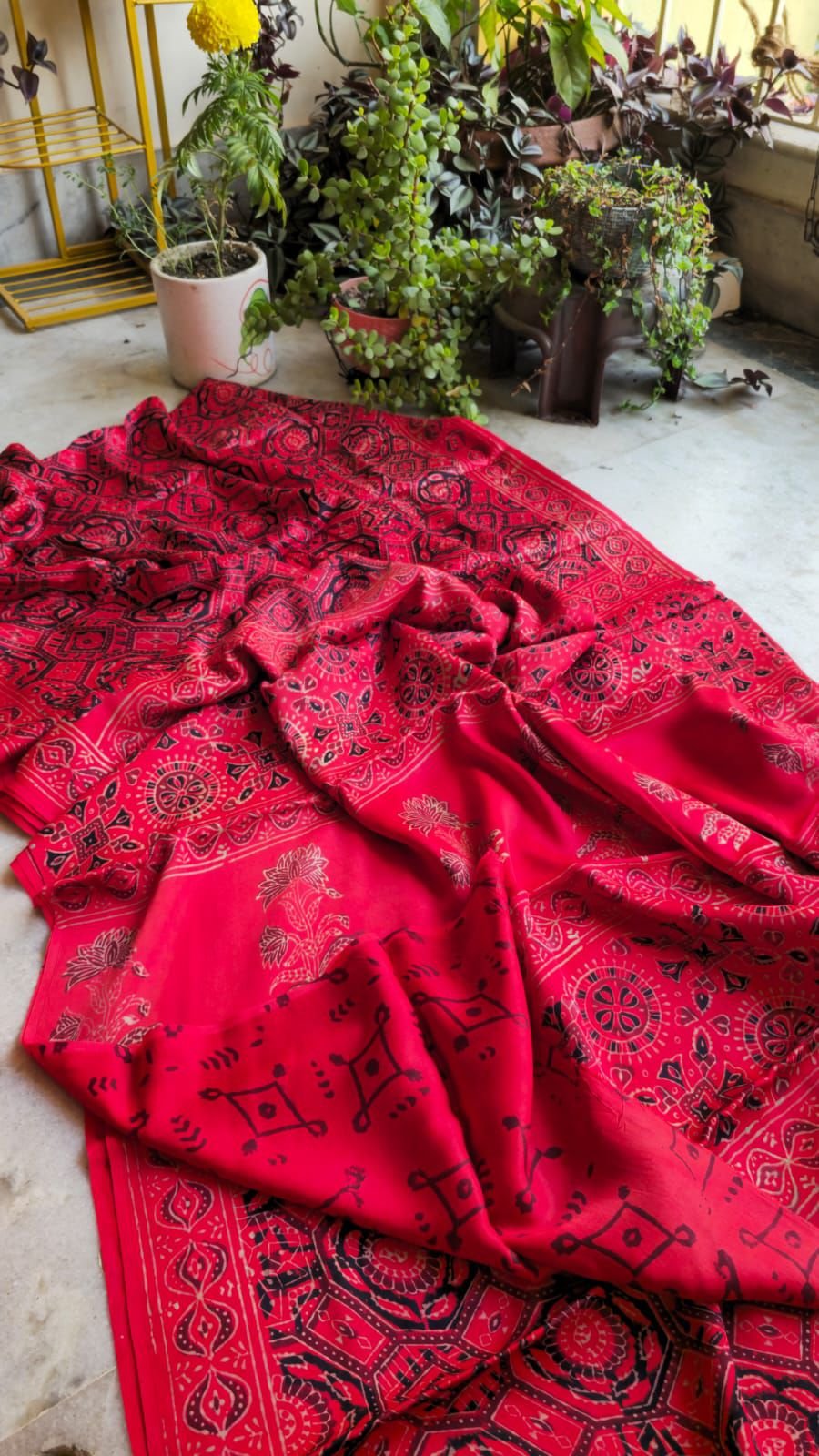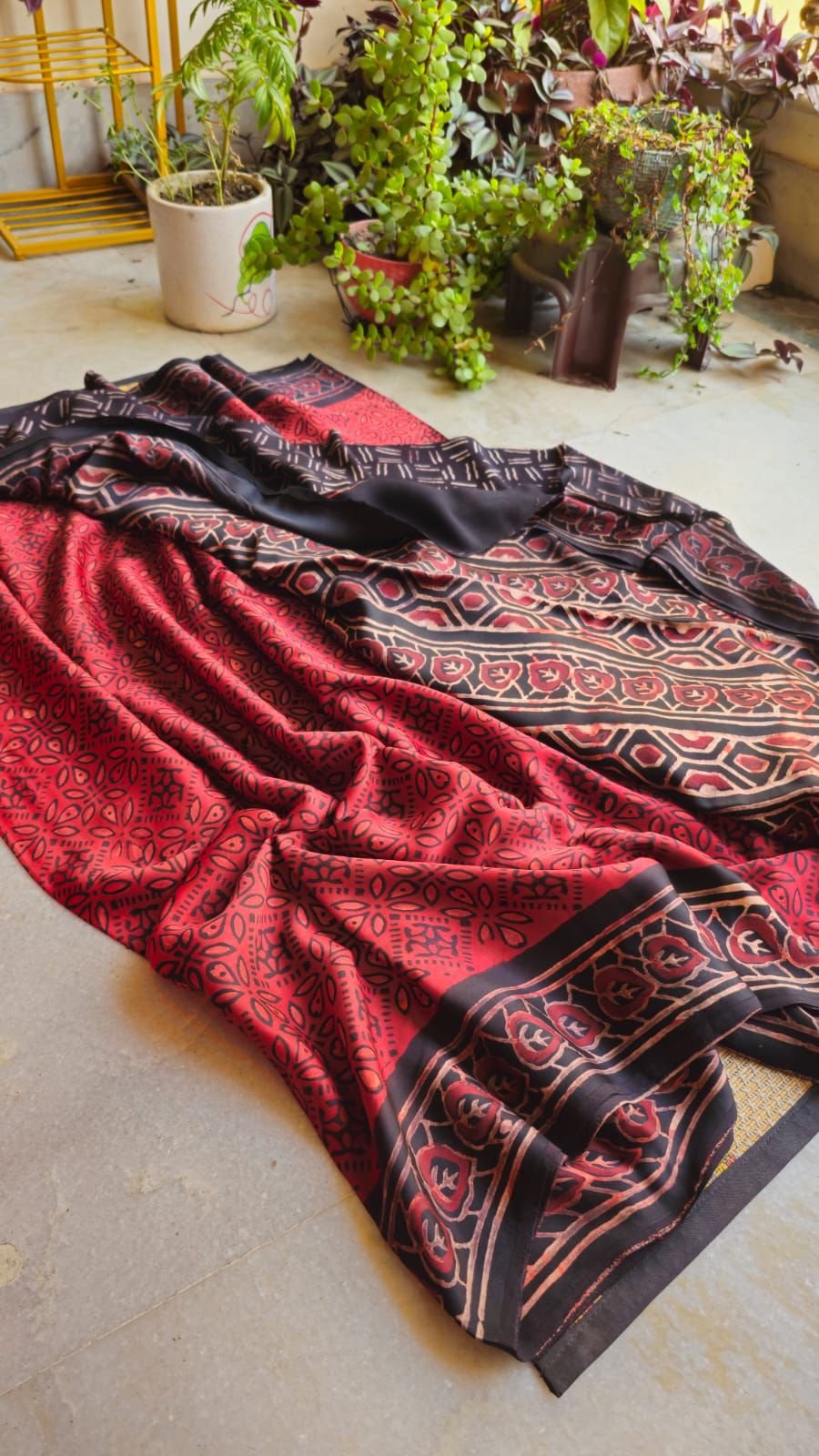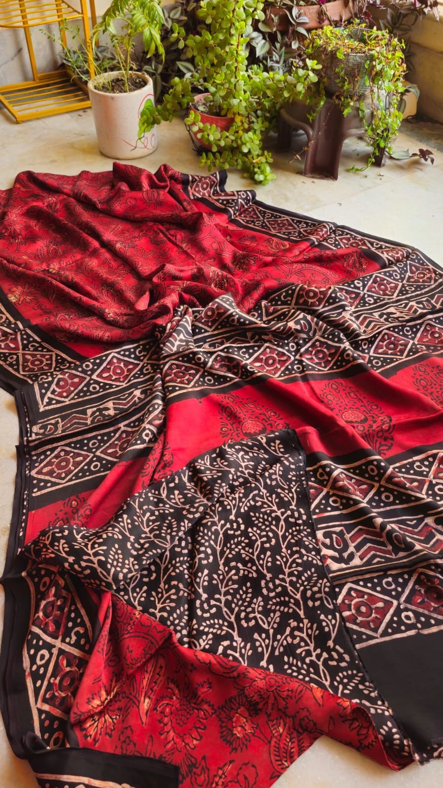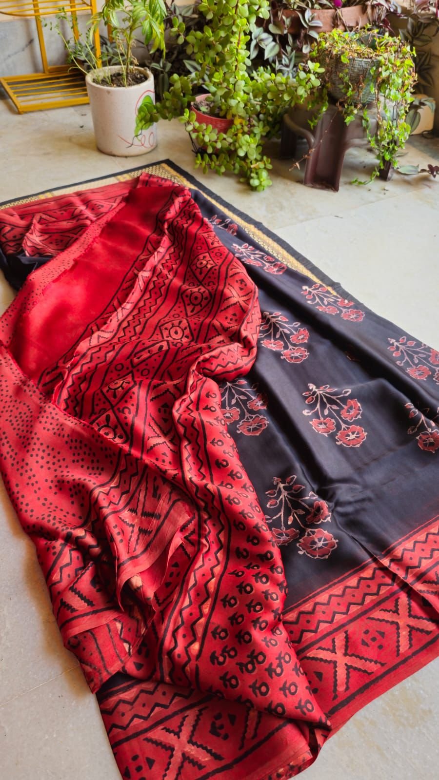 Made from pure Modal silk, this saree promises unparalleled comfort without compromising on style. The lightweight yet durable nature of Modal silk makes it ideal for daily wear or special events, allowing you to move effortlessly while exuding charm. The natural Ajrak printing uses eco-friendly dyes, ensuring sustainability and a connection to nature.