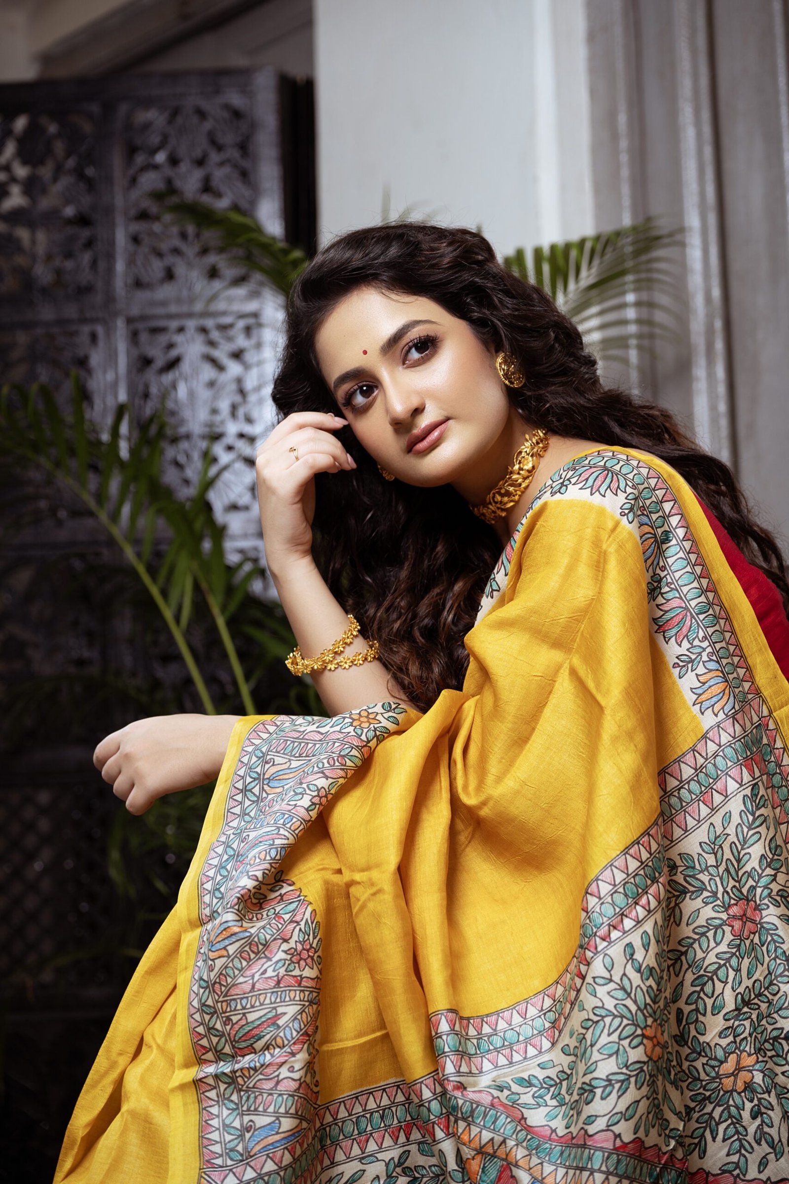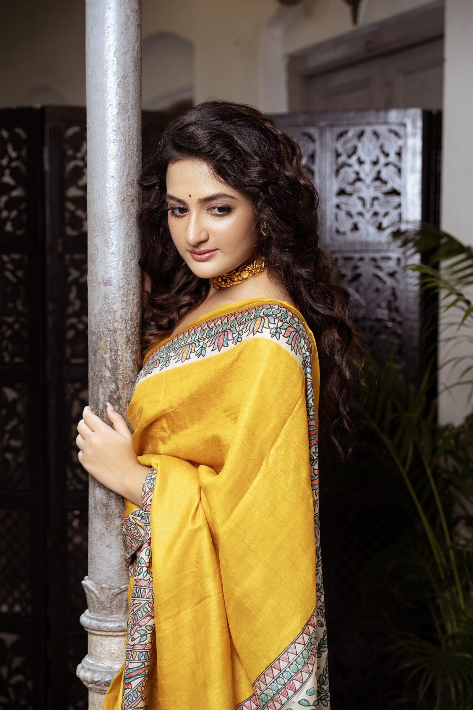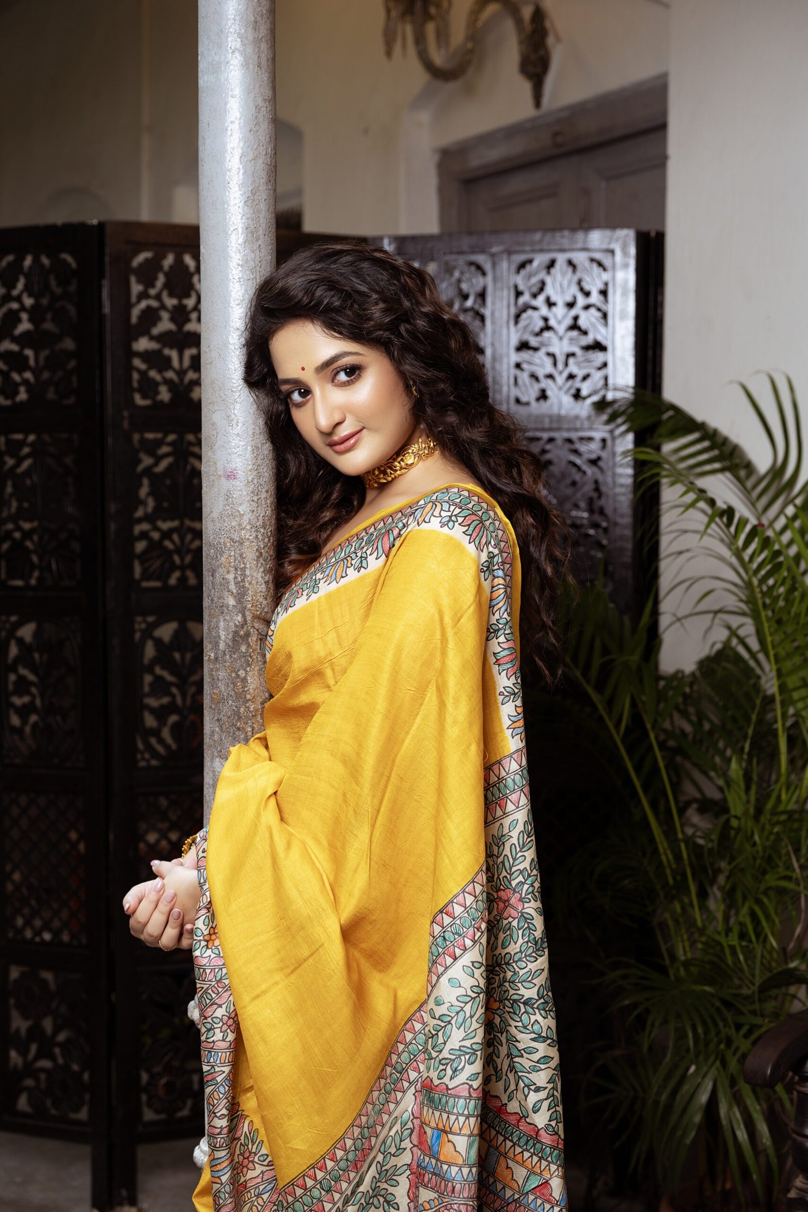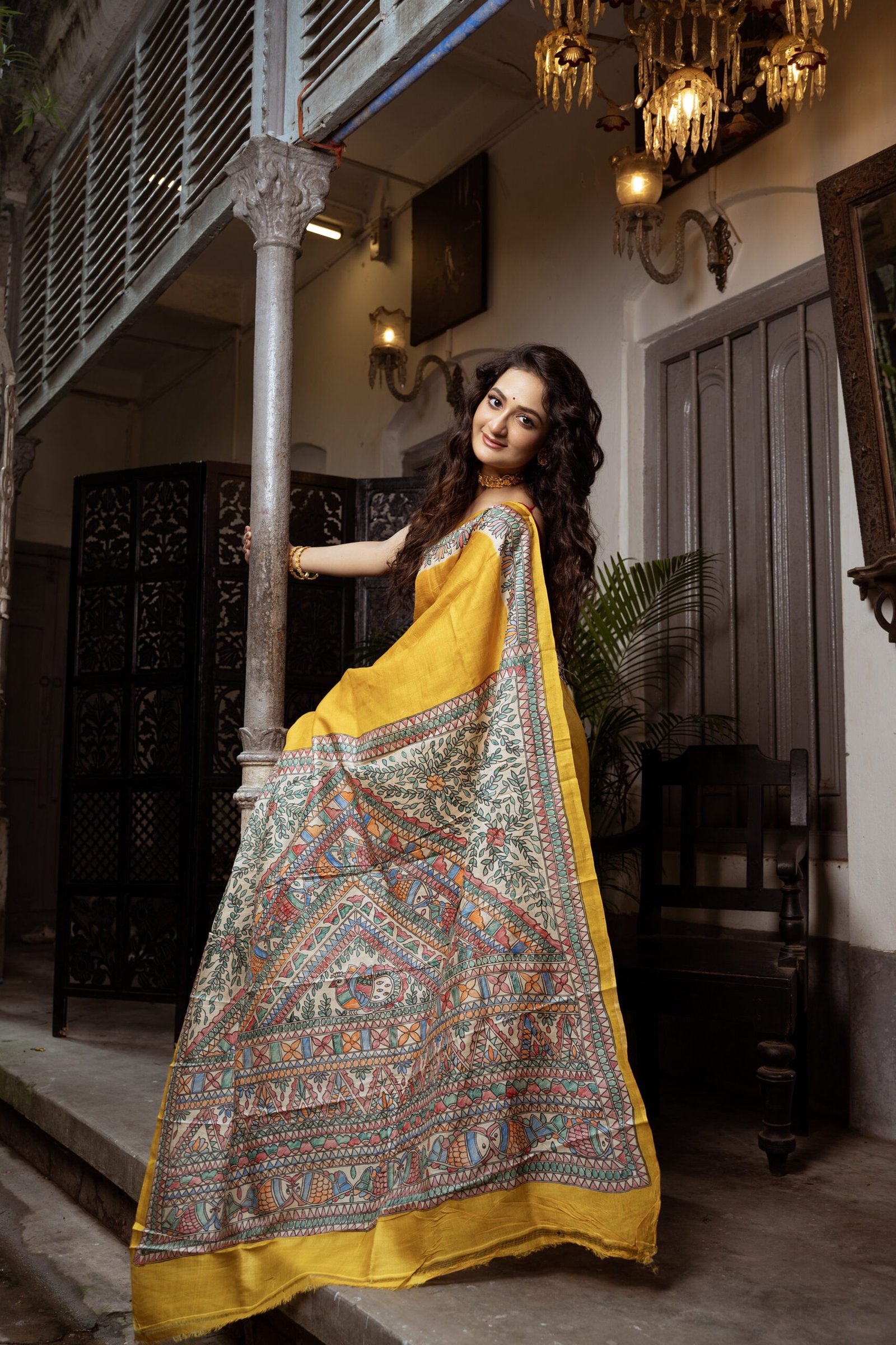 Madhubani Hand Painting In Pure Bengal Gachi Tussar Saree